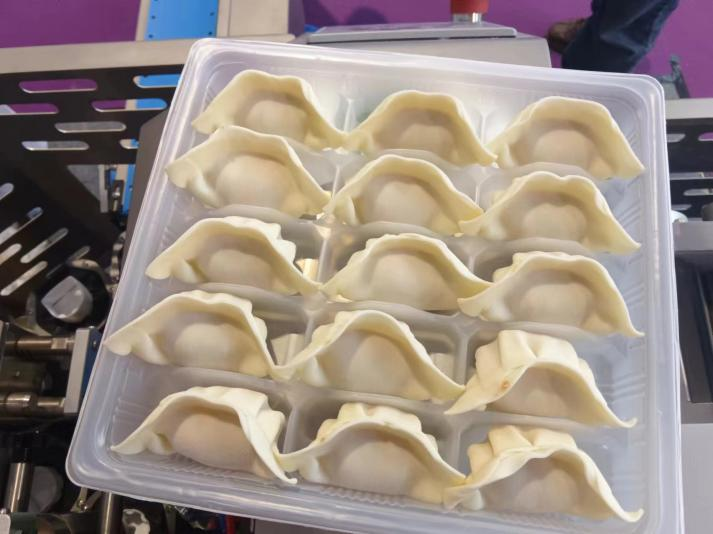 2、一体式花边饺子机:型号XSJ11A,产量2400-3600/小时候。松川一体式饺子机具备出色的生产能力,能够高效完成饺子的制作,轻松应对各类场景中的生产需求,实现快速、稳定的生产。其高效性能不仅缩短了生产周期,还降低了人力成本,为客户带来了实实在在的效益与便利。