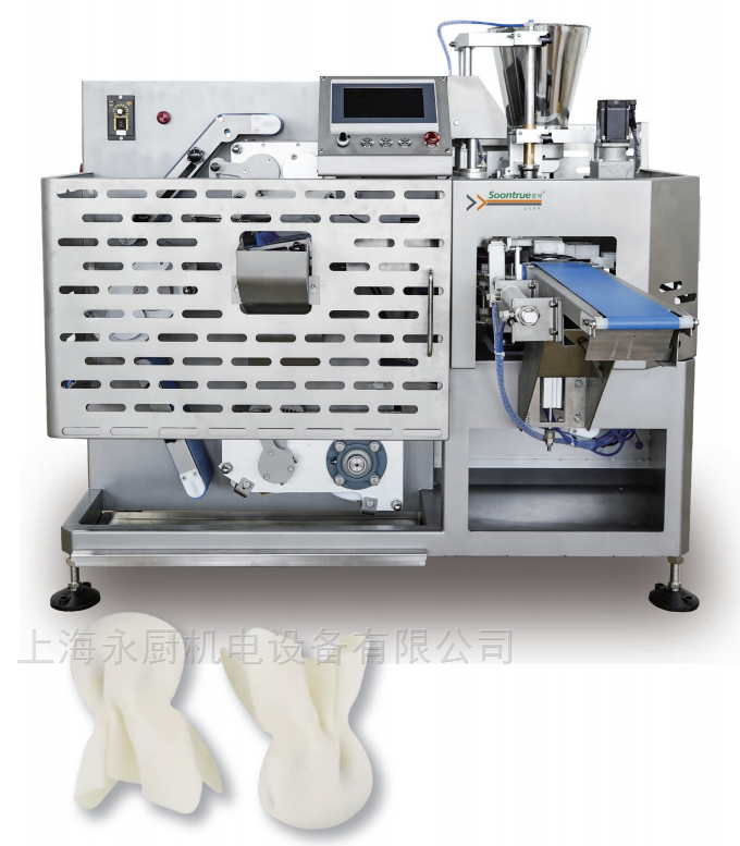 以自动的方式,配合对应的机构和模具,用来生产云吞。该云吞可煮、可炸,可适应不同场合的客户需求。