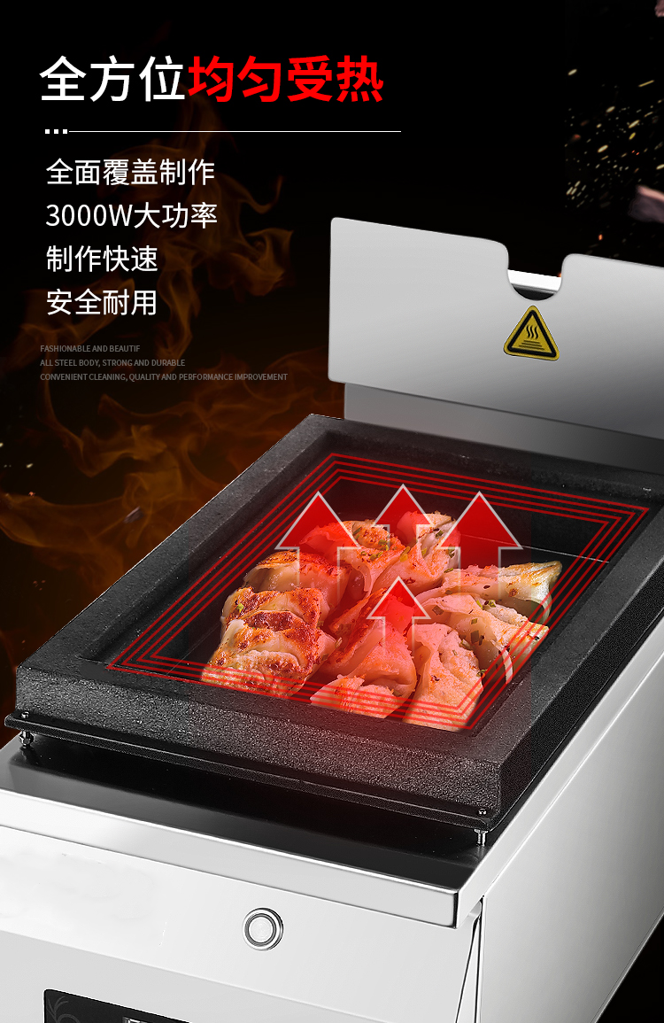 3、受热均匀,全面覆盖制作,3000w大功率制作快速,安全耐用;